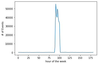 In this example, the project usually ingests 100-200 events per hour. There's been a spike that's reached 50,000 events, as shown in the graph below: